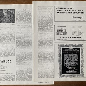 Benny Andrews. The B.E.C.C. / Black Emergency Cultural Coalition. Arts Magazine. Volume 40/#8, Summer 1970. Clipping