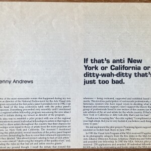 Benny Andrews. If that’s anti New York of California or ditty-wah-ditty that’s just too bad. Art Papers. Volume 10/#2, March/April 1986. Clipping