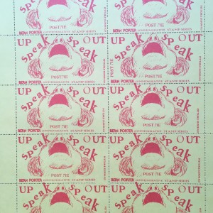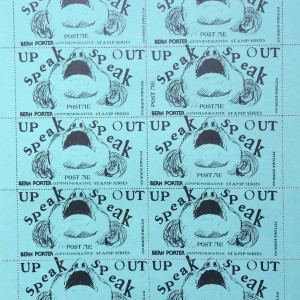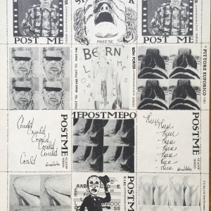 Carlo Pittore. (Charles Stanley also known as). Bern Porter commerical stamp series. 10 x 8 1/2″ / 25.2 x 21.2cm. Pittore Euforico: [1981]