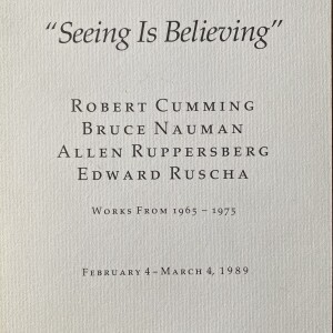 “Seeing Is Believing.” Christine Burgin Gallery, New York, February 4 – March 4, 1989
