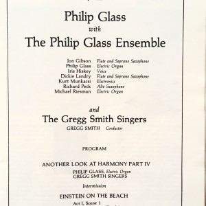 (Philip Glass / The Gregg Smith Singers). Philip Glass with the Philip Glass Ensemble and the Gregg Smith Singers. Carnegie Hall, June 1, 1978 (Carnegie Hall/Stagebill)
