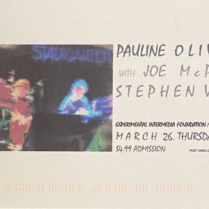 (Pauline Oliveros). Pauline Oliveros, with John McPhee, Stephen Vitiello. Experimental Intermedia Foundation, [New York], March 26, [1998]