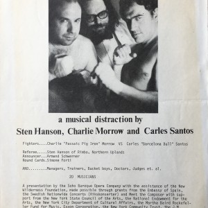 (Sten Hanson, Charlie Morrow, Carles Santos). The Heavyweight Sound Fight. A musical distraction by Sten Hanson, Charlie Morrow and Carles Santos. A’s, New York, March 14, [1981]