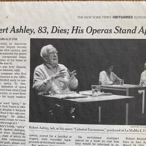 (Robert Ashley). Margalit Fox. Robert Ashley, 83, Dies; His Operas Stand Apart. New York Times, March 9, 2014