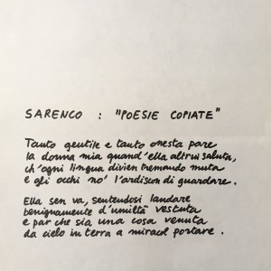 (Sarenco). (Isaia Mabellini known as). Sarenco: “Poesie Copiate” / Banco, Brescia, Performance: 7 febbraio 1974, Banco, Brescia. (Banco 5)