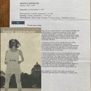 Heinz Gappmayr. Werkshau 1961-1997. Kunsthalle Wien, Wien, 2., 3. September – 2. November 1997