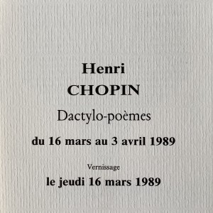 Henri Chopin. Dactylo-poèmes. Krief, Galerie d’Art Contemporain, Paris, 16 mars – 3 avril 1989