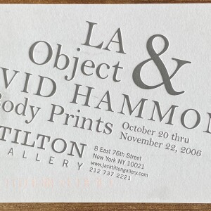 David Hammons. LA Object & Body Prints. Tilton Gallery, New York, October 20 – November 22, 2006