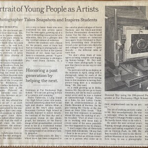 (Dawoud Bey). Somini Sengupta. Portrait of Young People As Artists. The New York Times. January 18, 1998. Photo Portrait by Chester Higgins Jr. Clipping