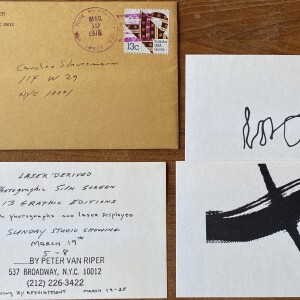Peter Van Riper. Laser Derived Photographic Silk Screen. 13 graphic editions with photographs and laser displayed. Studio showing March 19, [1978], 537 Broadway, New York. Viewing by appointment March 19-25