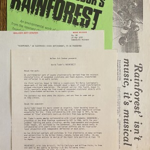 (David Tudor). Walker Art Center presents David Tudor’s Rainforest. WAC Gallery 3, 12-13, 15-16 June [1976]