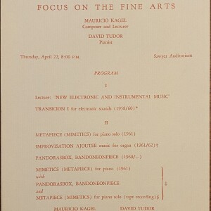 (Mauricio Kagel, David Tudor). Focus on the Fine Arts: Mauricio Kagel, David Tudor. Colby Junior College, New London, New Hamshire, April 22, 1965
