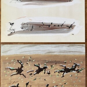 (Henri Michaux). 2. illustrated exhibition announcement cards, Galerie Lelong, Paris