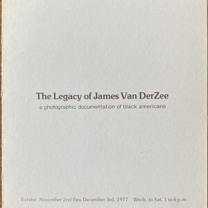(James Van Der Zee). The Legacy of James Van Der Zee; a photographic documentation of black americans. from the nineteen twenties to forties. The Alternative Center for International Arts, New York, November 2, 1977