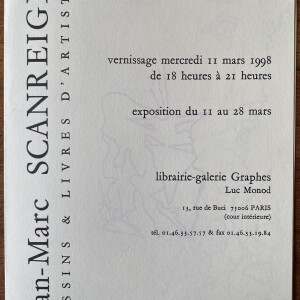 Jean-Marc Scanreigh. Dessins & livres d’artiste librairie-galerie Graphes, Paris, 11-28 mars 1992