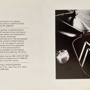 (Ralph Gibson). Castelli Photographs and Lustrum Press are please to announce the publication of a deluxe limited edition of Days at Sea by Ralph Gibson. Castelli Photographs, New York, no date [1981]