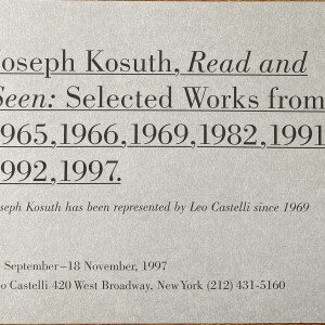 (Joseph Kosuth). Joseph Kosuth, Read and Seen: Selected Works from 1965, 1966, 1969, 1982, 1991, 1992, 1997. Leo Castelli, New York, 27 September – 18 November 1997