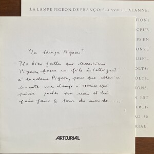 François-Xavier Lalanne. “La lampe Pigeon”. Artcurial, Paris, [1995]