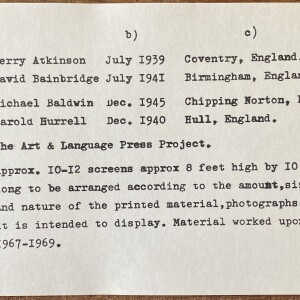 (Art & Language). The Art & Language Press Project: Terry Atkinson, David Bainbridge, Michael Baldwin, Harold Hurrell.