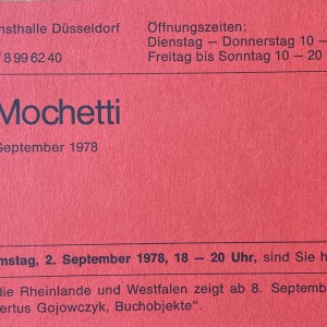 (Maurizio Mochetti). Maurizio Mochetti. Stästische Kunsthalle Düsseldorf, Düsseldorf, 2.-29. September 1978