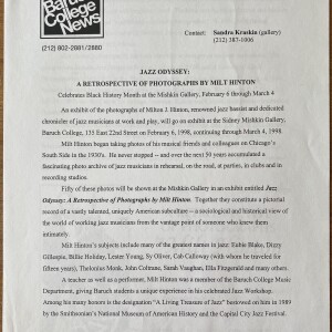 (Milt Hinton). Jazz Odyssey: A Retrospective of Photographs by Milt Hinton. Sidney Mishkin Gallery, Baruch College, New York, February 6 – March 4, 1998