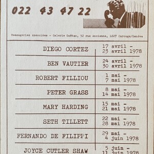 Un espace parlé / A Spoken Space. 022 43 47 22. Messageries Associées – Galerie Gaëtan, Genève. Avril – mai – juin 1978