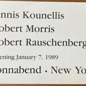 Jannis Kounellis, Robert Morris, Robert Rauschenberg. Sonnabend, New York. Opening January 7, 1989