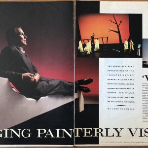 (Robert Wilson). John Rockwell. Staging painterly visions. The New York Times Magazine. November 15, 1992. 6 pages (i.e pages 22–26, 61) within magazine covers.