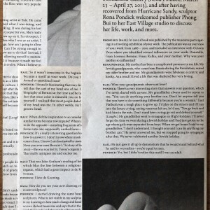 (Rona Pondick). In conversation: Rona Pondick, with Phong Bui. The Brooklyn Rail. March 2013. 4 pages (i.e. pages 24–27). 6 illustrations. (Clipping)