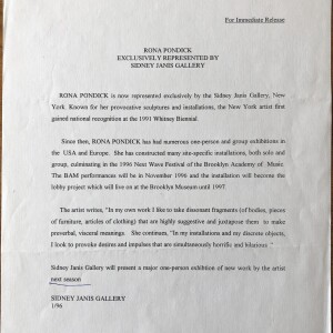 (Rona Pondick). Rona Pondick exclusively represented by Sidney Janis Gallery. January 1996.