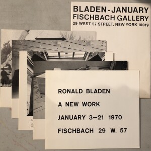 (Ronald Bladen). Ronald Bladen. Drawings and Sculptural Models. Sculpture Center, New York, October 24 – December 21, 1996 / Baden’s Poetic Affinity, October 28, 1996 / Bladen in Retrospect, November 18, 1996