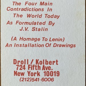Saul Ostrow. The Four Main Contradictions in The World Today As Formulated by J.V. Stalin (A Homage to Lenin). An installation of Drawings. Droll / Kolbert, New York, April 4-22, 1978