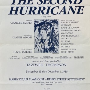 Aaron Copland, music / Edwin Denby, libretto. The Second Hurricane; a play opera. Harry Our Playhouse, Henry Street Settlement, New York, November 13 – December 1, 1985