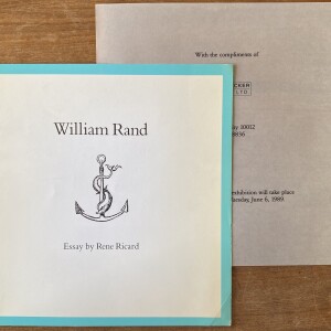 (William Rand). William Rand. Essay by Rene Ricard. 56, Bleeker Gallery, [New York], June 6 – July 1, 1989