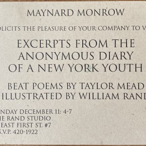 (Taylor Mead / William Rand). Excerpts From the Anonymous Diary of a New York Youth. Beat poems by Taylor Mead illustrated by William Rand. The Rand Studio, [New York], December 11, [1994]