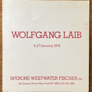 (Wolfgang Laib). Wolfgang Laib. Sperone Westwater Fischer, New York, 6 – 27 January 1979