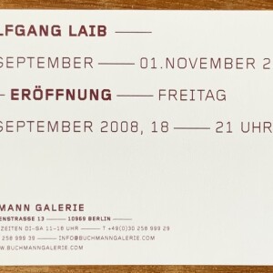 (Wolfgang Laib). Wolfgang Laib. Buchmann Galerie, Köln, 5. September – 1. November 2008