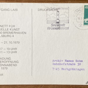 (Wolfgang Laib). Wolfgang Laib. Kabinett für aktuelle Kunst, Bremerhavn, 22.9. – 21.10. 1979