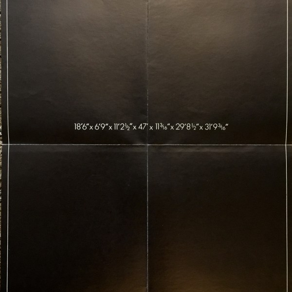 18′ 6″ (i.e. Eighteen feet six inches) x 6′ 9″ x 11′ 2 1/2″ x 47′ x 11 3/16″ x 29′ 8 1/2″ x 31′ 9 3/16″ . San Francisco Art Institute, San Francisco, California, April 11 – May 3, 1969