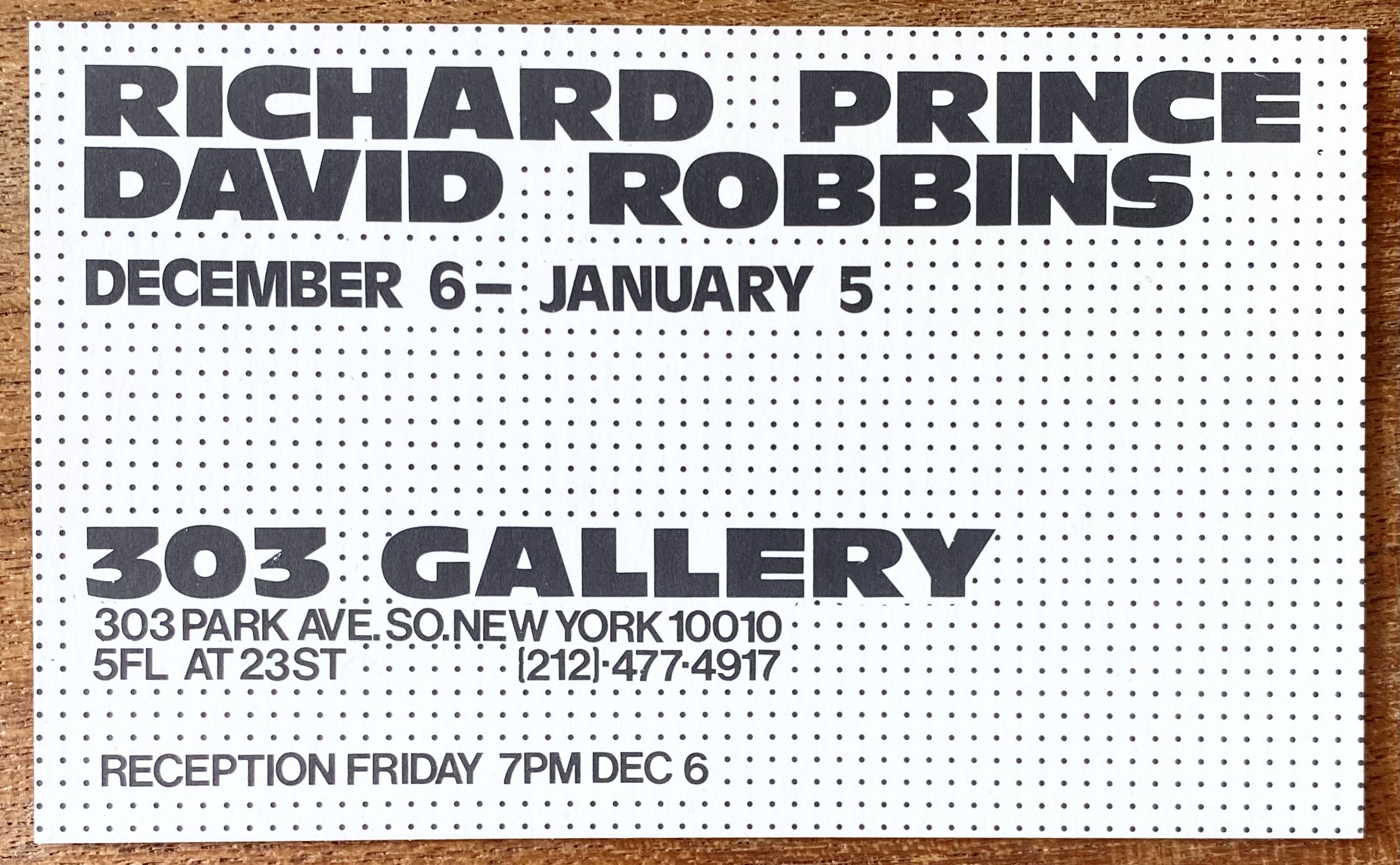 303 Gallery, New York, December 6, [1985] – January 5, [1986]. Richard Prince, David Robbins