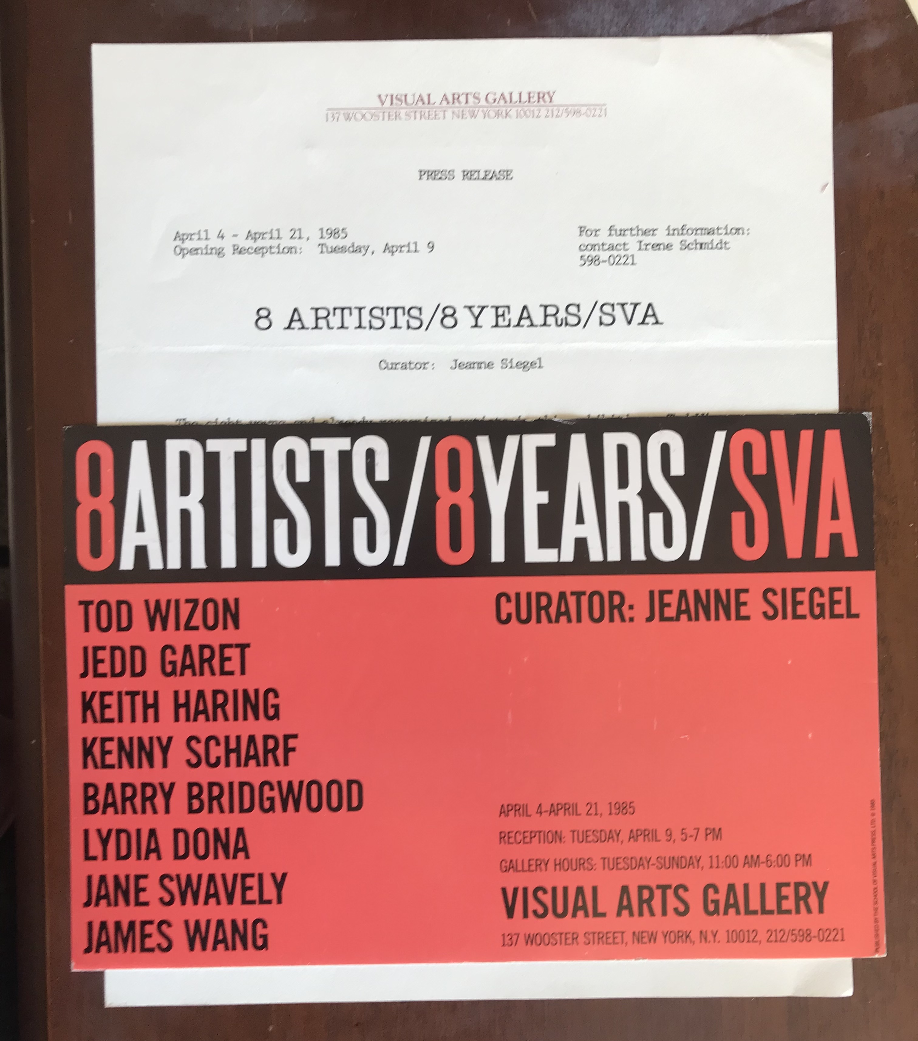 8 (i.e. Eight) Artists / 8 (i.e. Eight) Years / SVA. Visual Arts Gallery, New York, April 4-21, 1985