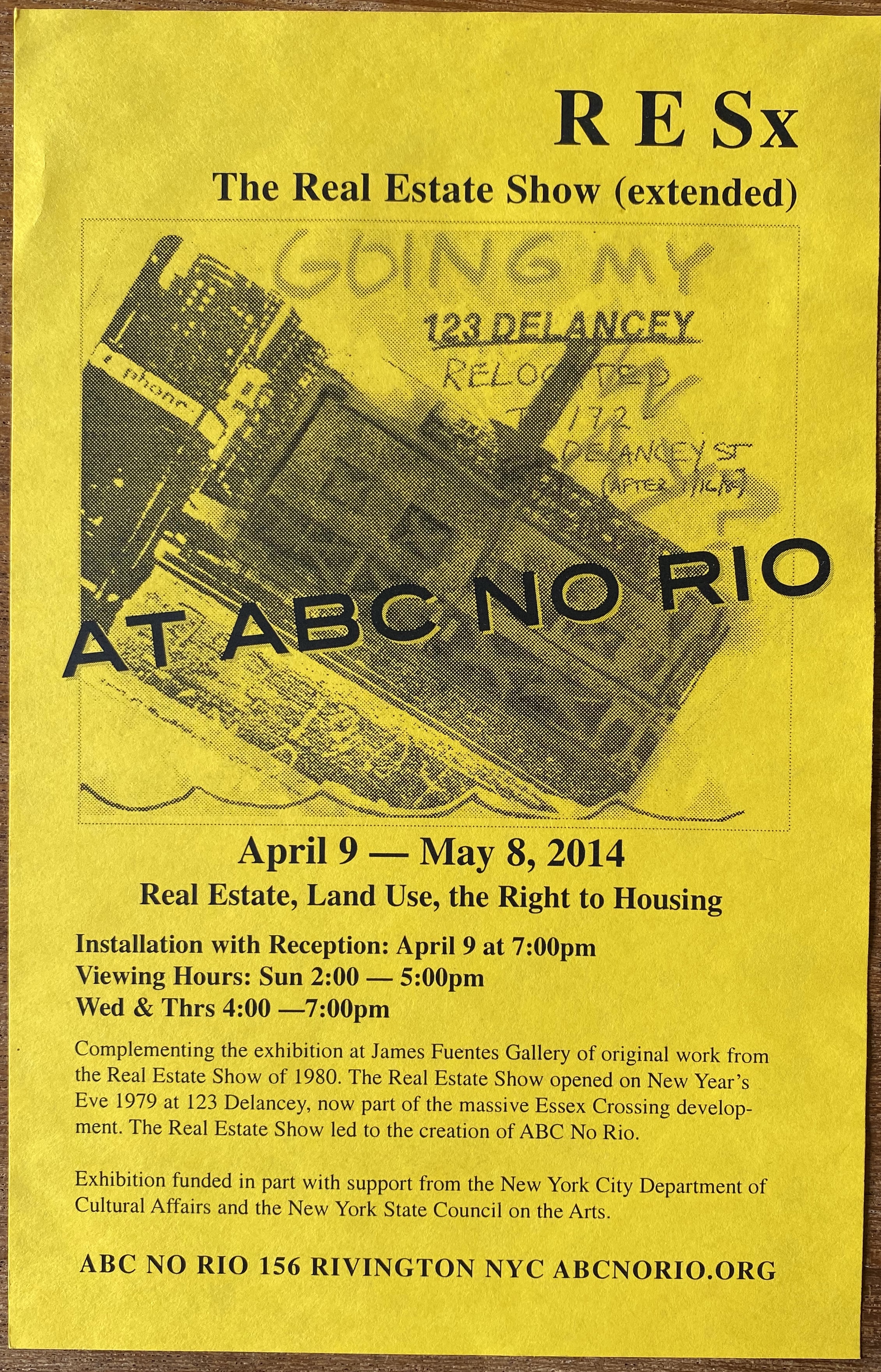 (ABC No Rio). RESx / The Real Estate Show (extended). ABC No Rio, New York, April 9 – May 8, 2014