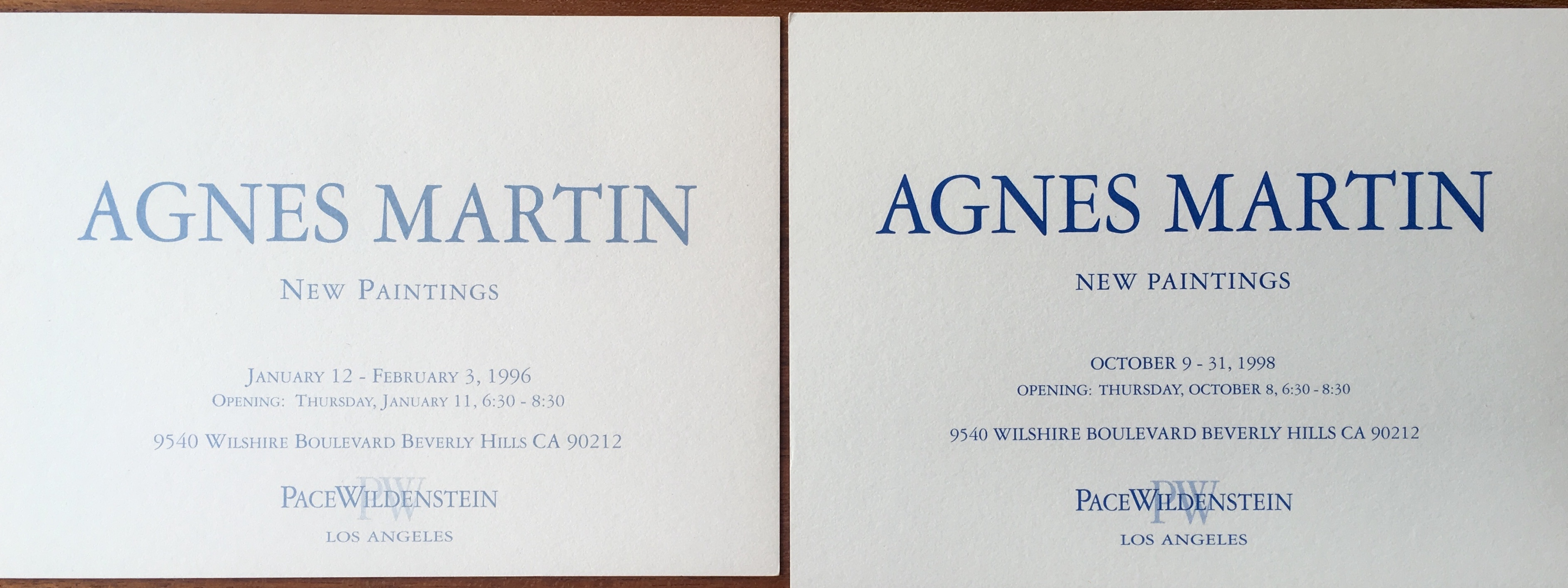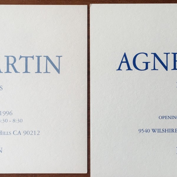 Agnes Martin. 2 exhibition announcement cards, PaceWildenstein, Los Angeles