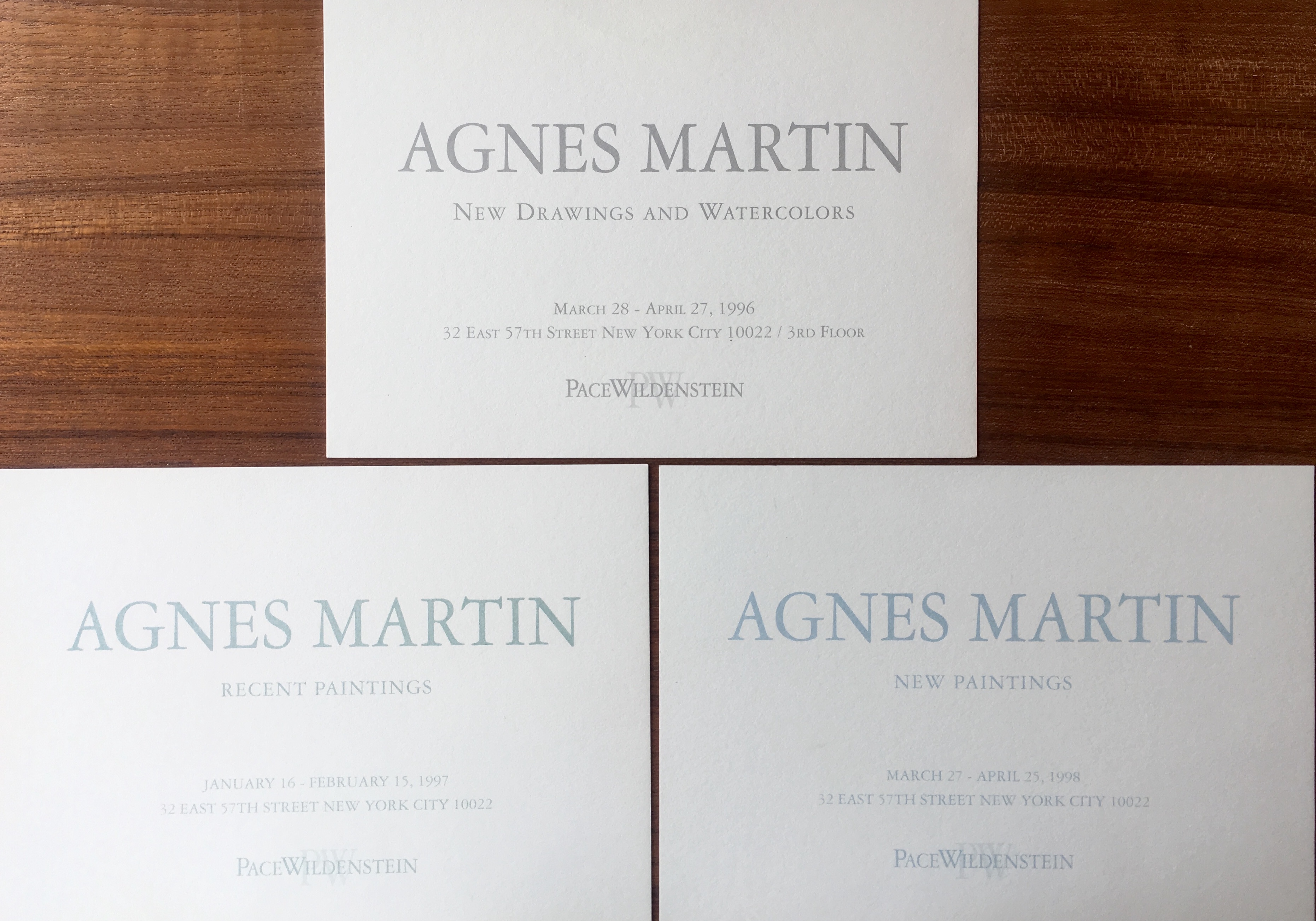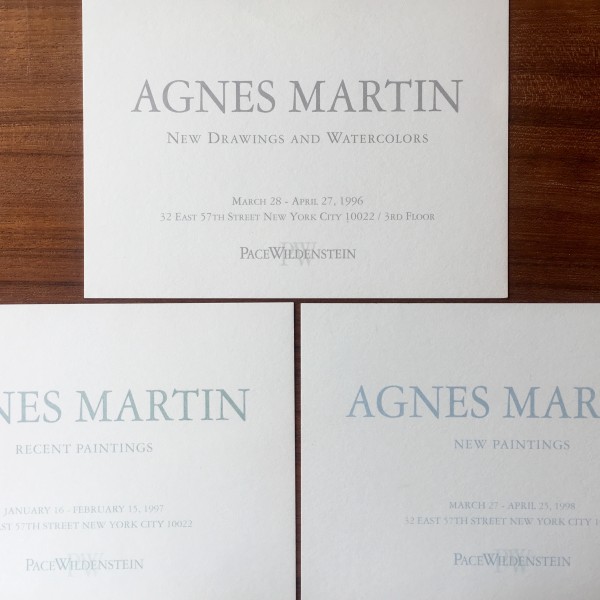 Agnes Martin. 3 exhibition announcement cards, PaceWildenstein, New York