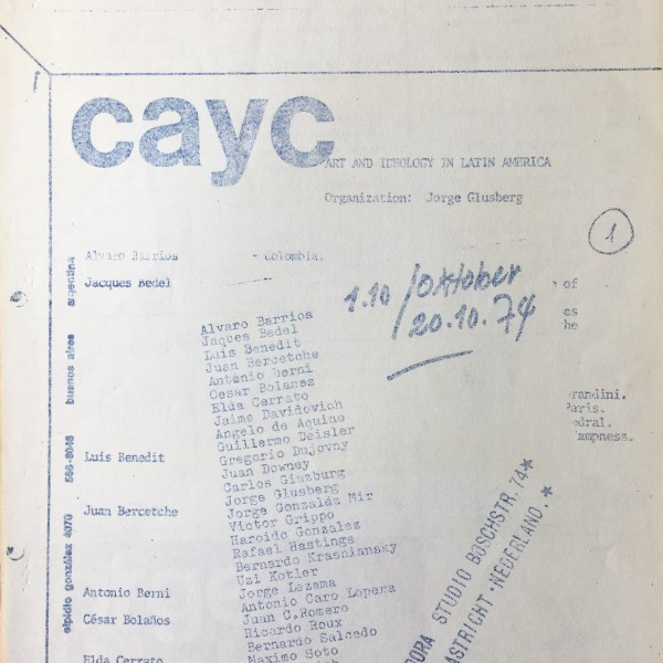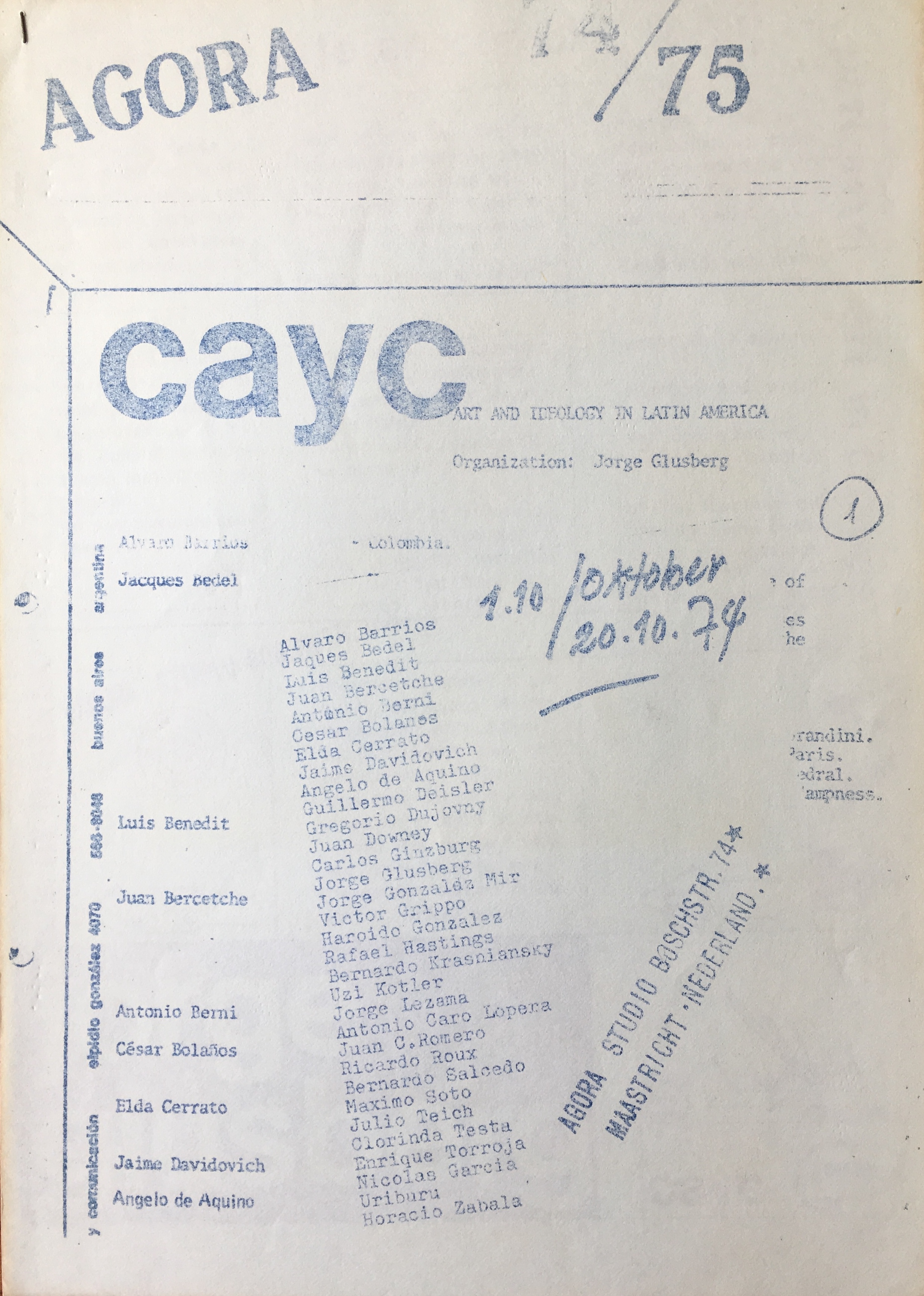 (Agora Studio. Maastricht). Agora 74/75. CAYC. Art and ideology in Latin America. Organized by Jorge Glusberg. 1-20.10.1974.