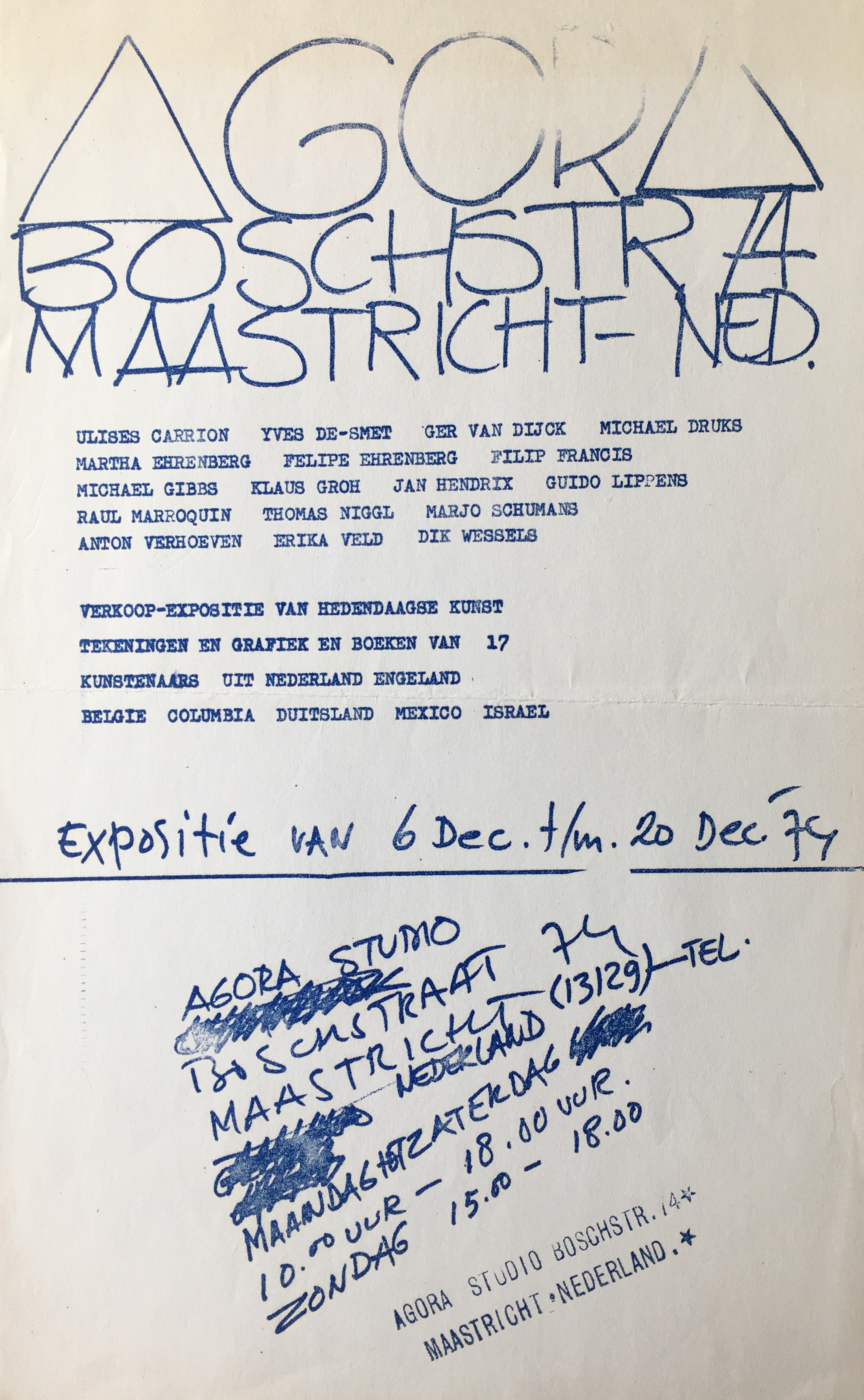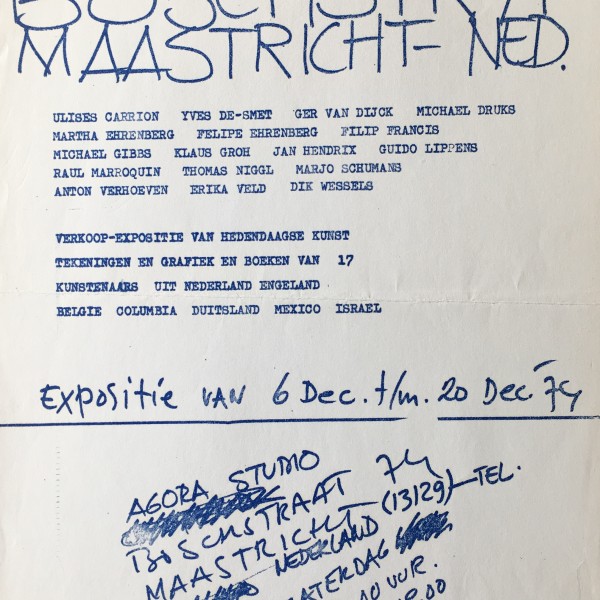 (Agora Studio. Maastricht). Expositie van 6 Dec. thru 20 Dec ’74