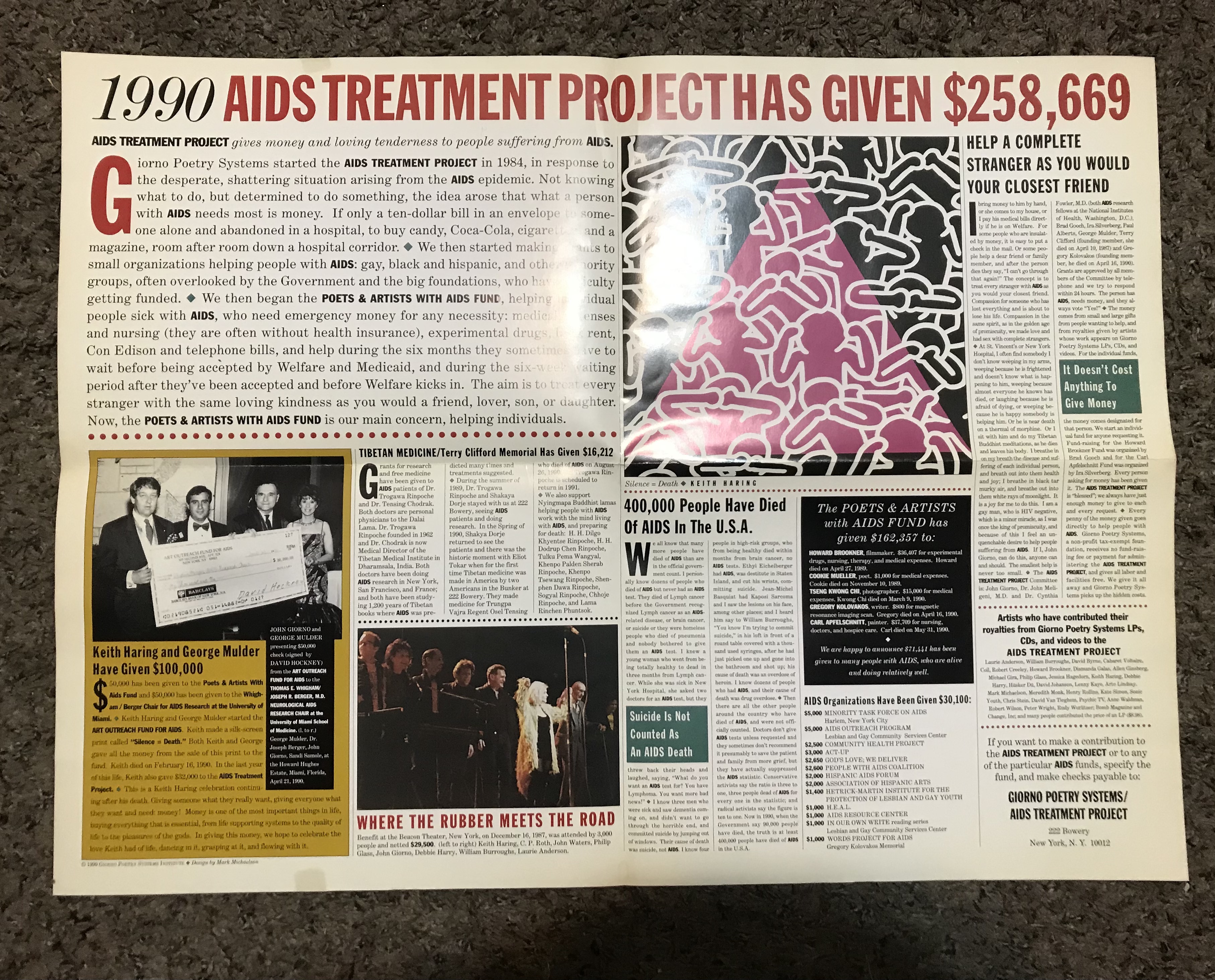AIDS Treatment Project Has Given $258,669. [New York:] Giorno Poetry Systems Institute, 1990