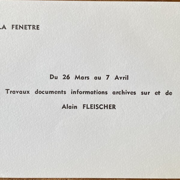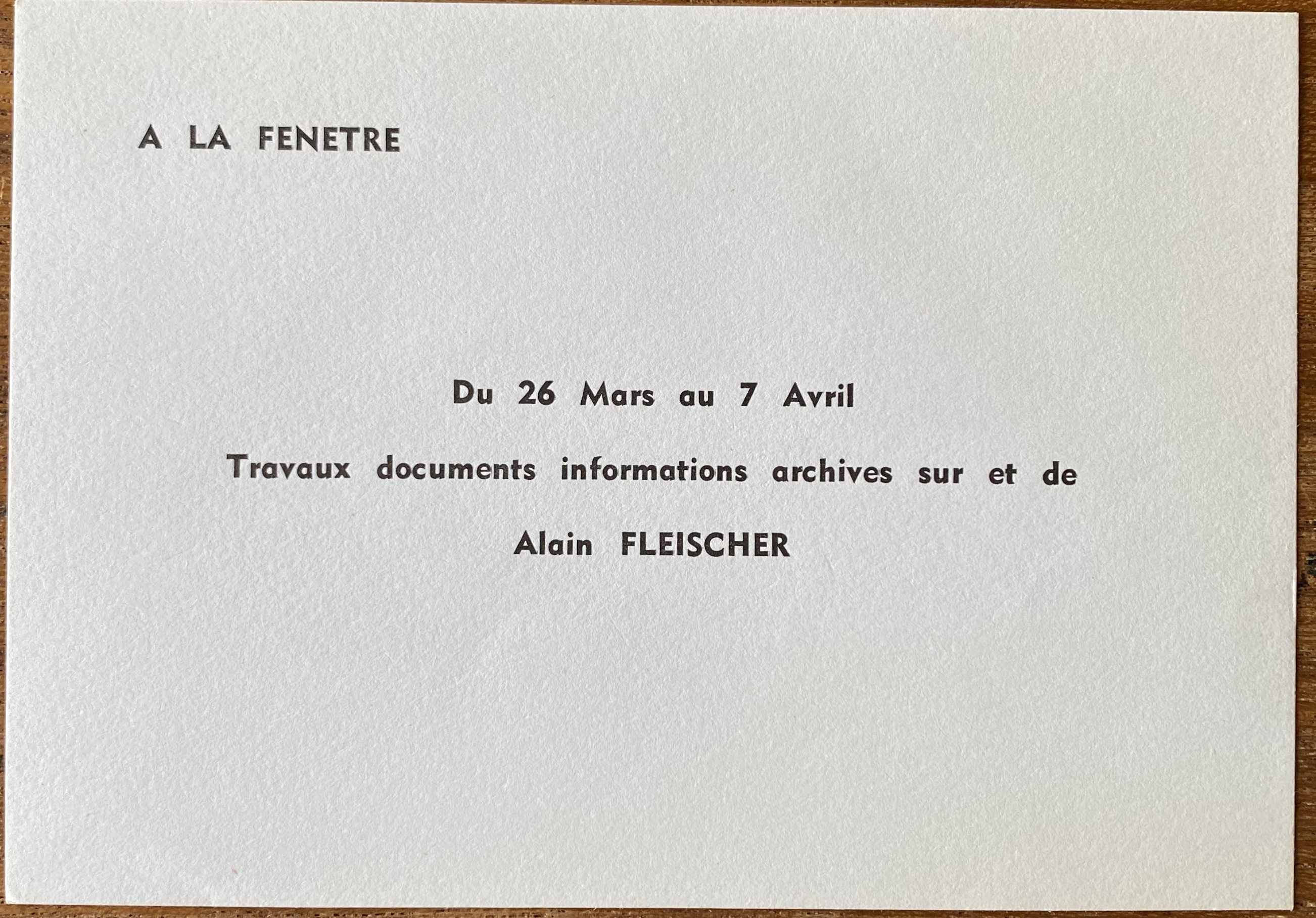 (Alain Fleischer). Travaux, documents, archives sur et de Alain Fleischer. A la Fenêtre, [Nice], 27 mars – 7 avril [1973(?)]