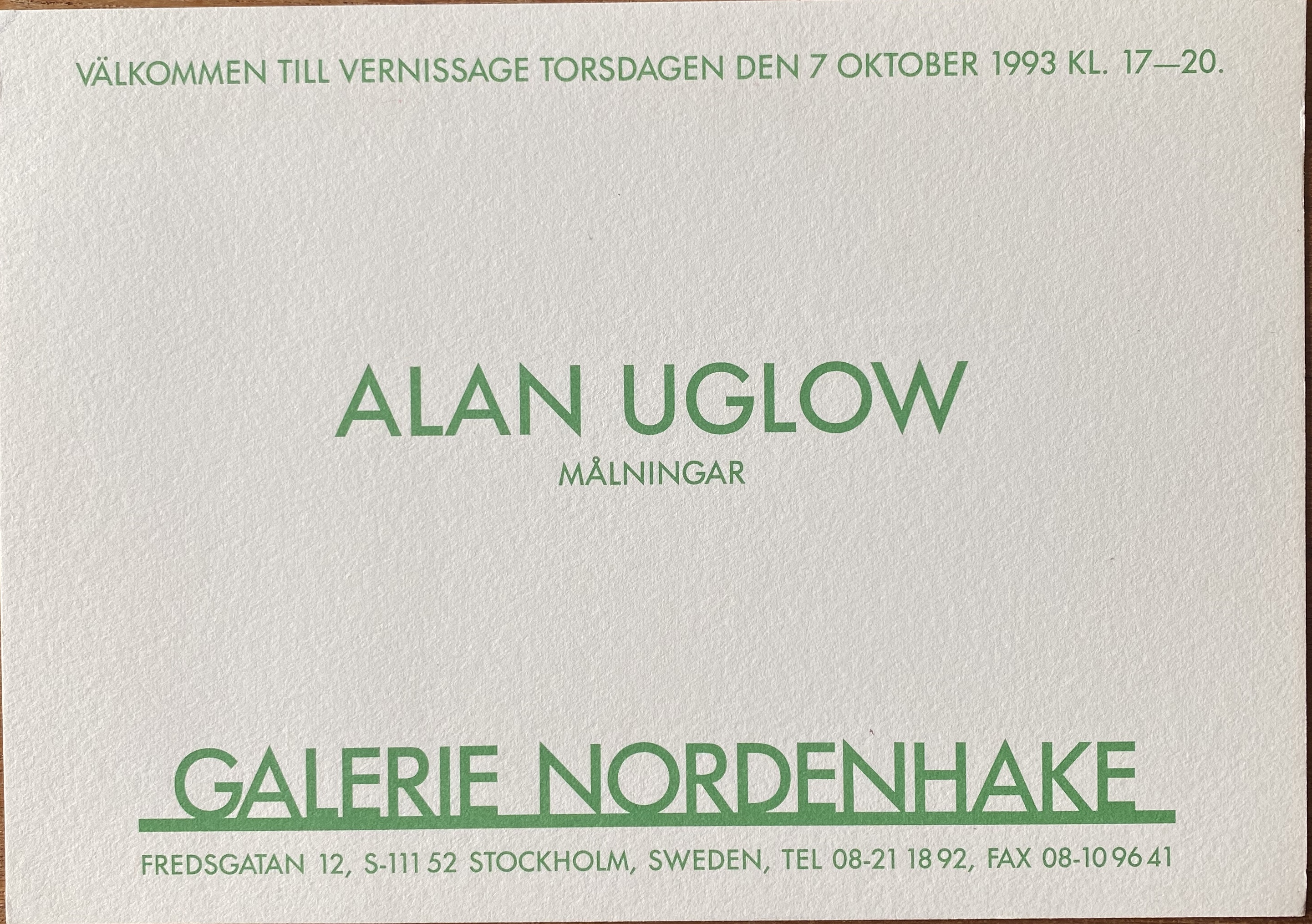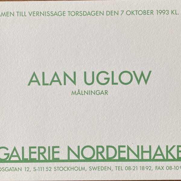 Alan Uglow. Målningar. Galerie Nordenhake, Stockholm. Vernissage: 7 oktober 1993