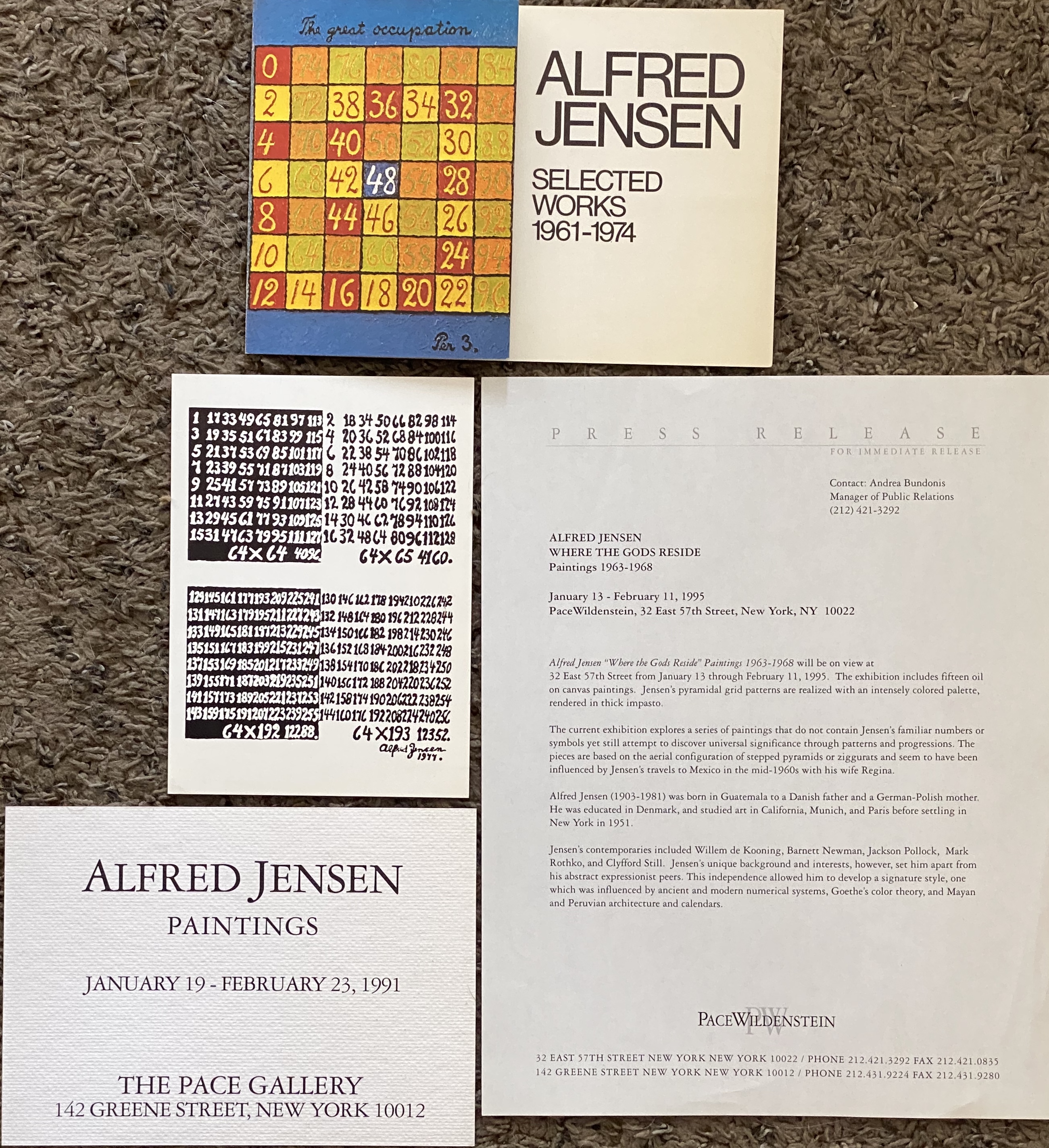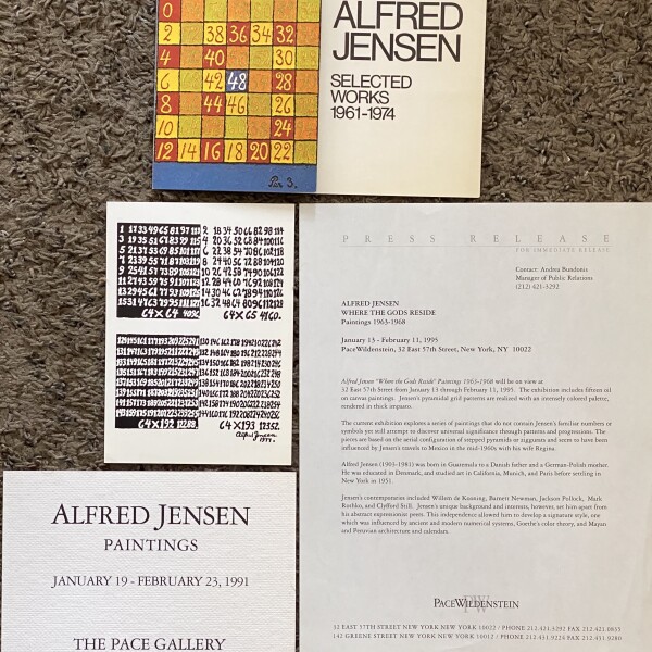 Alfred Jensen. 8 exhibition announcements, 1 invitation, 1 press release, Pace / Pace Wildenstein / Pace Prints, 1976 – 2011
